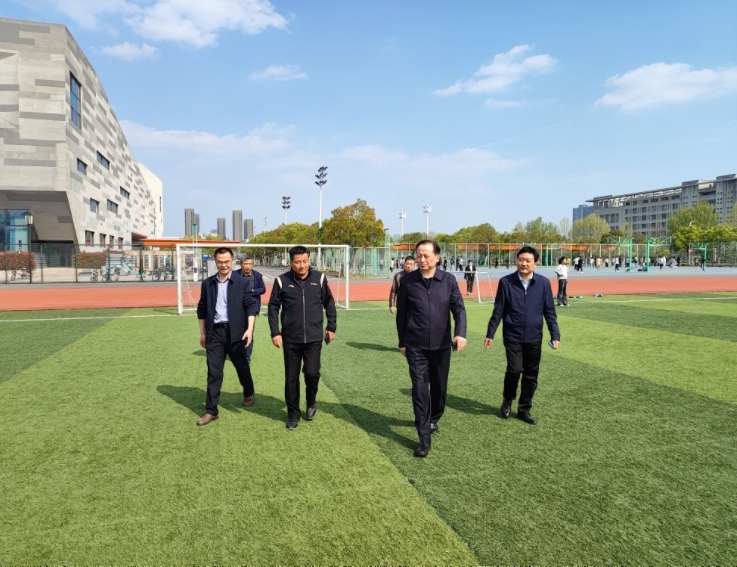 足球场,蔡新立带领后勤集团和体育部实地查看了足球具体的损坏情况并询问了解了损坏现状和对体育运动产生的不利影响,要求后勤集团联合体育部尽快做出应急维修和彻底改造方案,提供完善优质的体育运动设施,确保师生运动安全。