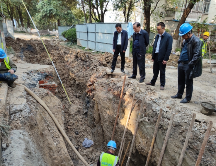 北校区雨污分流项目施工现场,蔡新立实地查看指导北校区雨污分流最关键的施工点,现场指导施工单位要按照设计图纸规范施工,加快施工进度,保持施工现场文明有序,按时间节点保质保量完成各项施工任务。