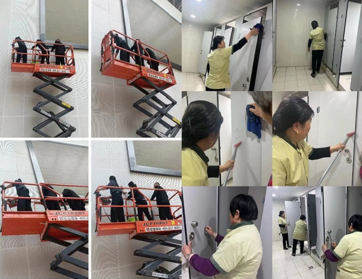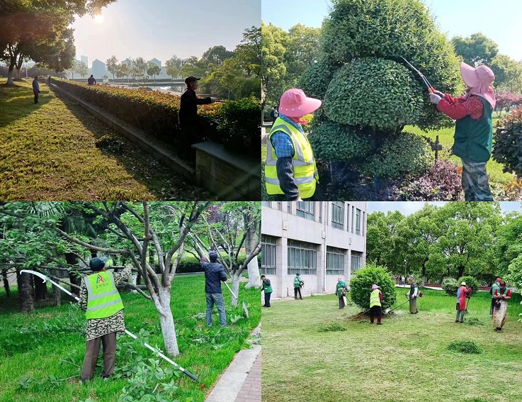 在校庆校园氛围营造中,集团物业中心员工群策群力,扎实做好校庆期间的各项卫生清理及巡查工作。对校史馆、日月广场、体育馆等重点区域进行清扫保洁,对全校进行一次校园环境综合治理,特别是易海湖周边卫生、逸夫楼水池清理、校庆路线清洗等卫生突击工作。除此之外,为保证校庆活动周边区域卫生环境的优美整洁,物业中心增加了保洁频次,并定人定位对活动周边进行实时保洁。集团绿化中心员工加班加点修剪草坪,对校园内各景观区域树木花卉进行统一补种并精心灌溉养护,对校友打卡地、重要校友座谈会等主要场地周边绿地、灌木、乔木进行集中修剪打造草齐花艳树美的校园环境,为校友和宾客提供舒心的感官。