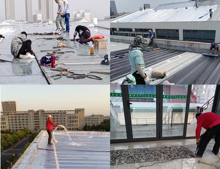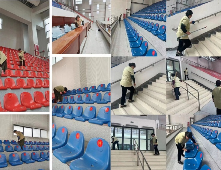 自南校区体育馆被确定为校庆主场馆开始,在维修改造工程时间紧、任务重的情况下,维修中心立足自身职责,赶时间、抢进度,昼夜施工,确保5月5日65周年校庆在场馆内期顺利举办。经常组织施工、监理等单位召开每周例会,倒排工期、查缺补漏,对体育馆屋面、结构网架、室内墙面等关键部位多次排查维修并制定应急处置预案。同时对体育馆附近路面进行排查,更换损坏的地砖、玻璃、窨井盖。利用周末和五一假期等时间,加班加点推进工程进度,为学校65周年校庆活动提供了美观、大方、整洁、舒适的场地。