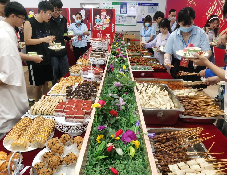 本网讯 为进一步丰富校园饮食文化生活,营造健康祥和的校园氛围。5月17日,由后勤服务集团主办,校内各餐饮公司共同举办,合肥华宇餐饮有限公司承办的以“百味美食 香溢建大”为主题的校庆美食节在南校区成功举办。校党委常委、副校长蔡新立出席活动,有关职能部门负责人、各学院分管学工负责人以及学生代表共六百余人参加活动。