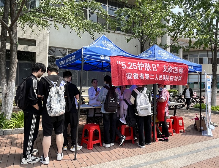 为加强广大师生对皮肤健康的重视与认知,学校校医院特邀安徽省第二人民医院皮肤科主任,主任医师,现任安徽省医师协会皮肤性病学分会常委戴前梅等人525日第十七届“全国护肤日”当天走进我校开展义诊活动,为师生科普关于皮肤问题的科学知识。在广大师生积极参与下,各皮肤科医生指导师生科学地保健护肤,预防皮肤病的发生;专业指导师生应对皮肤疾病,帮助师生解决皮肤健康困扰。