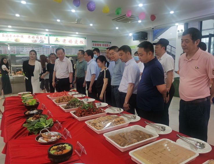 本网讯 为持续营造喜庆的校庆氛围,加强校园饮食文化建设,丰富学生校园生活,促进食堂饮食服务质量提升。后勤服务集团组织举办校庆美食节暨“校园十大最受欢迎菜肴”评选活动。529日,校党委常委、副校长蔡新立亲临美食节活动现场,带队检查各食堂活动举办情况和指导十大美食评选工作。