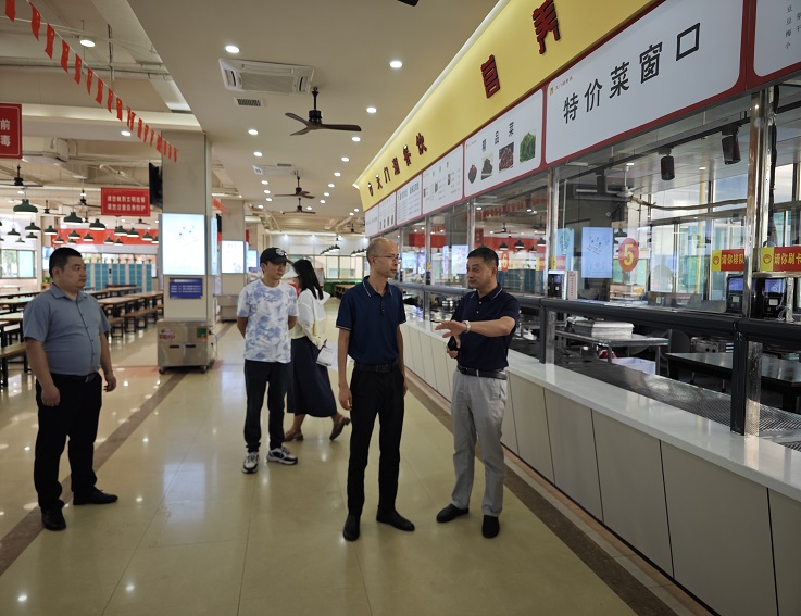 本网讯  为进一步加强学校食堂食品安全监管工作,落实辖区包保责任制,保障学校师生饮食安全,91日,合肥经济技术开发区锦绣社区管理委员会城市管理部王克兵主任一行来到学校南区食堂,查看食堂开学前各项准备工作,集团饮食中心人员陪同。