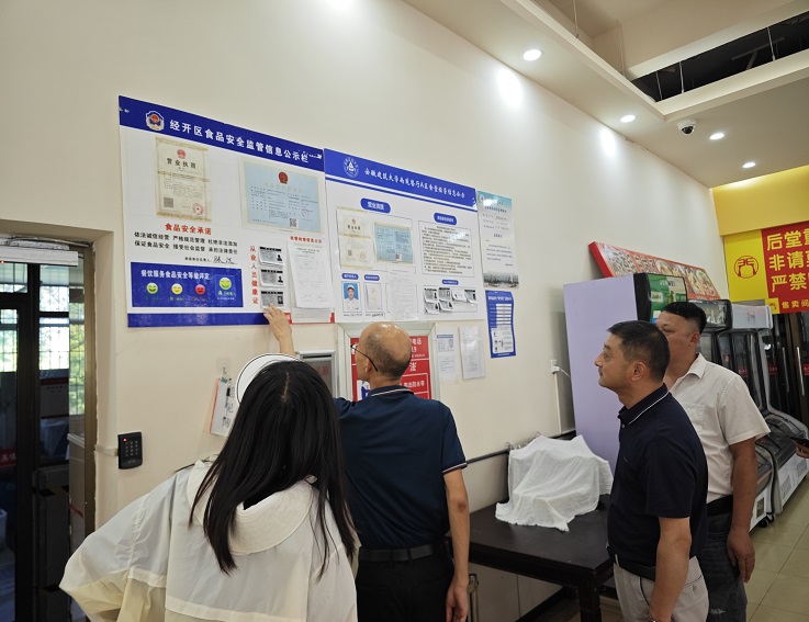 经开区锦绣社区管理委员会城市管理部来校查看学生食堂开学前准备工作