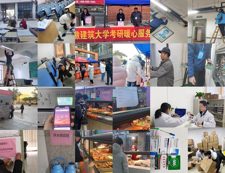 助力一程路,情暖学子心。2024年全国硕士研究生招生考试于2023年12月23日至25日在我校进行,为确保考试期间各项服务保障到位,召开专项会议,提前部署,针对考场布置、卫生保洁、电力供应、设施检修、餐饮供应等环节进一步明确工作要求。考试期间,为考生提供免费早餐,推出优惠营养的爱心助考套餐,食堂就餐大厅延迟关闭空调,为跨校区考生提供温暖的休息场所;在考点楼宇设置暖心服务站和休息点,提供免费糖果、红糖姜茶等;提前优化配电系统、进行满负荷运行测试,加强重要电路特巡特护,调节空调温度;提前为考生发放口罩、配备常用药品等等,以积极主动的态度、热情饱满的服务,全力以赴做好研考期间服务和保障工作。