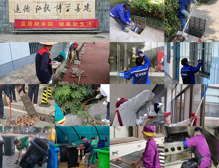 推进一项行动,建设宜居校园。2023年4月是第35个爱国卫生月,后勤在全校范围内开展春季爱国卫生整治行动,从宣传动员、清脏治乱、治理四害入手,向全校师生进行爱国卫生月科普,集中对教室卫生死角、公寓垃圾站、食堂灶台门窗、校园下水道等重要区域进行环境卫生整治,彻底清除卫生死角和积存垃圾,持续推动垃圾分类工作,引导全校上下积极改善学习生活环境,倡导文明健康绿色环保生活方式,营造美丽宜居校园浓厚氛围。