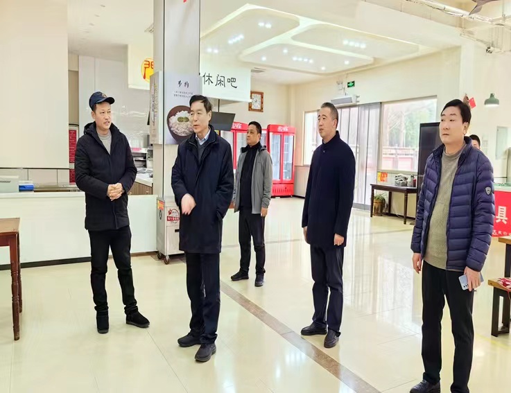 黄显怀、闵杰一行先后来到南校区土木学院实验室、体育馆、大学生活动中心、值班食堂、生活服务用房、学生公寓等重点部位进行了详细查看。听取了保卫处、后勤管理处关于寒假期间学校安保、水电保障、应急抢修、食堂供餐和学生住宿学习等工作汇报。