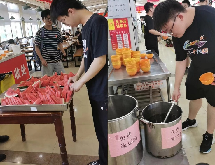 暑假期间,两校区各有一家值班食堂正常开餐,为留校师生提供餐饮保障服务。在规范操作、安全卫生的基础上,结合天气炎热及留校学生和校园施工人员多等特点,合理安排开餐时间,调整菜品结构,丰富花色品种,以清淡可口、清凉消暑食品为主,用心烹饪每一道饭菜,用汗水和努力为师生们带来一份清凉与美味。