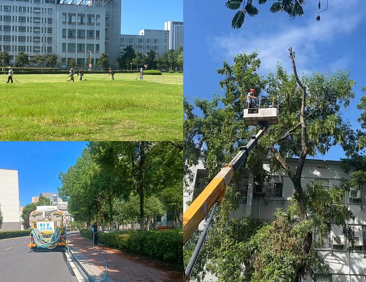 暑期是绿化人的攻坚季,后勤管理处积极部署暑期绿化养护工作计划,进一步加强夏季施肥和灌溉管理,科学合理安排浇水时间,针对性地开展苗木修剪、抗旱浇灌、病虫害防治等工作,及时更换生长不良的绿植,精心呵护校园一草一木,全力做好校园绿化抗旱养护和环境整治工作。