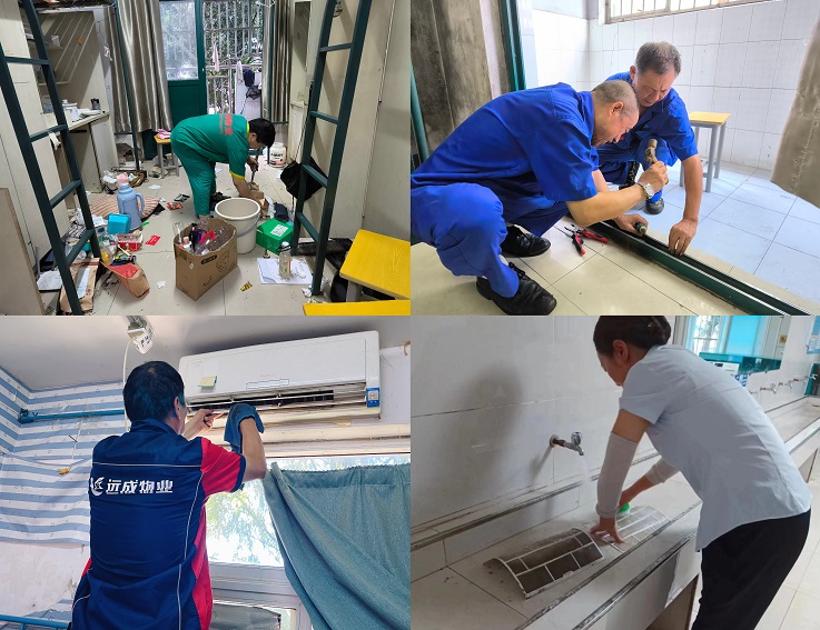 暑假伊始,后勤管理处集中完成毕业生房间保洁、维修、锁芯更换等工作,利用暑期对宿舍的独立卫生间、电风扇、空调滤网、洗衣机等进行全面清洗,做好开水器滤芯更换工作,完成金寨路校区1#-4#学生公寓宿舍床采购、安装及验收工作。全力做好各公寓楼的值班值守、卫生保洁及水电家具维修等工作,为暑期留校学生住宿提供服务保障,提前制定2024级新生住宿方案并为开学入住做好准备工作。