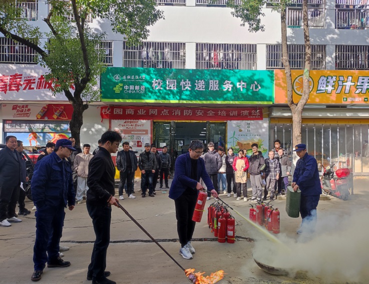 本网讯 安全生产,警钟长鸣。为贯彻落实习近平总书记关于安全生产和消防安全重要指示批示精神,1127日下午,后勤管理处在紫云路校区南门校园快递服务中心前,组织开展校园商业网点消防安全知识培训演练活动,本次活动得到学校保卫处大力支持。
