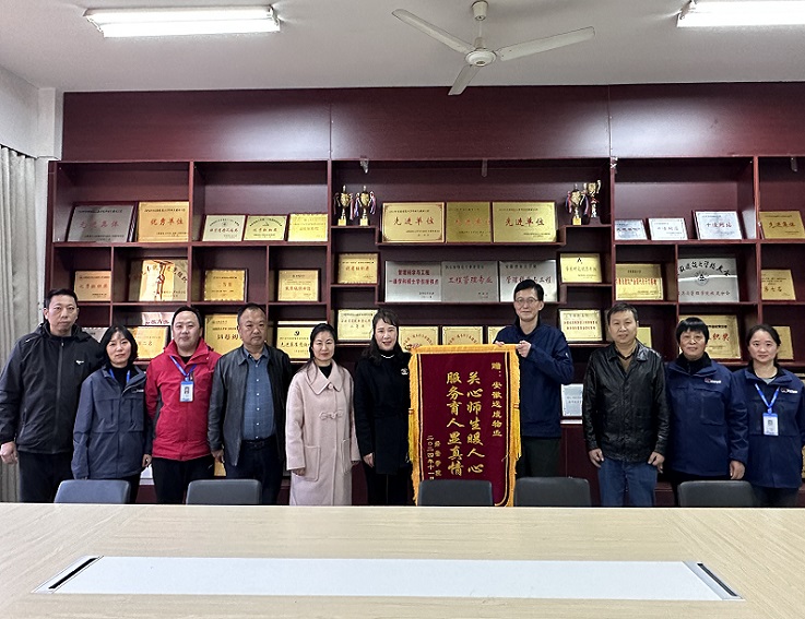本网讯 近日,我校后勤管理处远成物业收到了来自经济与管理学院的“关爱师生暖人心 服务育人显真情”锦旗,这面锦旗承载着学院师生对后勤管理处物业保障人员长期工作的肯定,更是对未来工作的期待和鼓励。