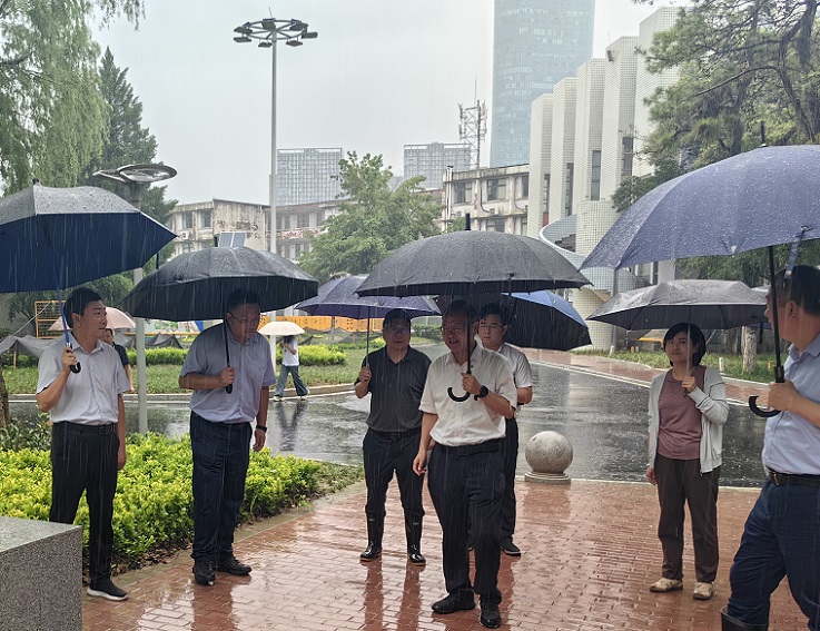正值暴雨天气,王连贵一行深入金寨路校区实地考察积水点治理工程的建设成效,听取了市水务集团关于整个项目施工的情况汇报。他对这项关乎民生的重点工程实现如期高质量竣工表示充分肯定,对校方与施工单位在工程推进中展现出的密切协作、高效配合给予高度称赞。王连贵强调,当前正处于防汛关键期,务必以“时时放心不下”的责任感抓实汛期安全工作,要始终保持高度警惕,持续关注降雨趋势及强度变化,加强与相关部门的沟通协作,做到早预警、早防范,加强隐患巡查,严格落实责任,切实筑牢校园防汛安全屏障。