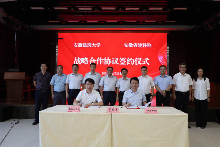 本网讯 8月25日下午,学校与安徽省建筑科学研究设计院战略合作签约仪式在建科大厦举行。校党委常委、副校长王佐才,安徽建工集团控股有限公司党委委员、副总经理陈仁虎出席并讲话。安徽建工集团高新技术研究院党委副书记、副院长余志刚,安徽省建筑科学研究设计院党委副书记、院长刘春雷出席并介绍了高新院和建科院的基本情况。