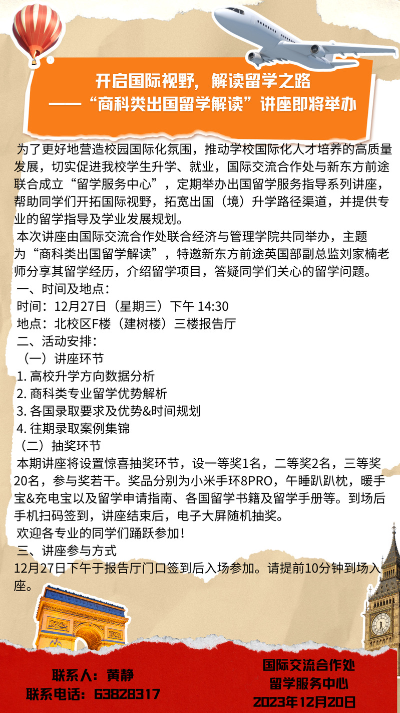 开启国际视野,解读留学之路——“商科类出国留学解读”讲座即将举行