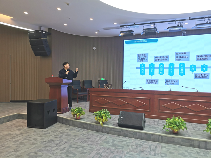 讲座中,主讲人深度剖析大学生就业升学路径,让同学们对未来发展形势一目了然。随后,对全球留学方向的系统介绍,涵盖各国教育体系、优势专业等关键信息,极大拓宽了同学们的国际视野。在留学&考研&就业齐规划环节,创新性的规划方案为同学们提供了新思路,助力其平衡多元发展路径。最后,针对 “如何获取心动offer”,从背景提升到面试技巧的实用分享,为同学们的留学申请提供了有力指导。
