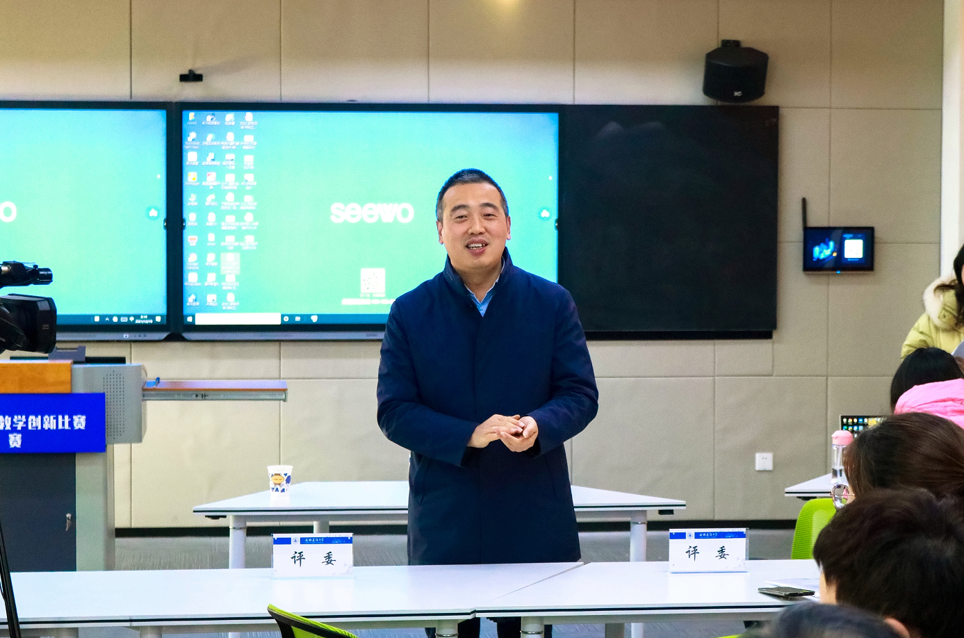 本网讯  为落实立德树人根本任务,以“四新”建设理念为引领,引导教师潜心教书育人,推动信息技术与教育教学融合创新发展,打造学校教学改革风向标,12月19日,学校2021年教师教学创新比赛决赛在南校区教学主楼6楼举行。校长黄显怀、副校长闵杰出席了活动。黄显怀巡察各组别比赛情况,并利用短暂的午餐会时间与专家评委就比赛情况进行深入了解和充分交流。