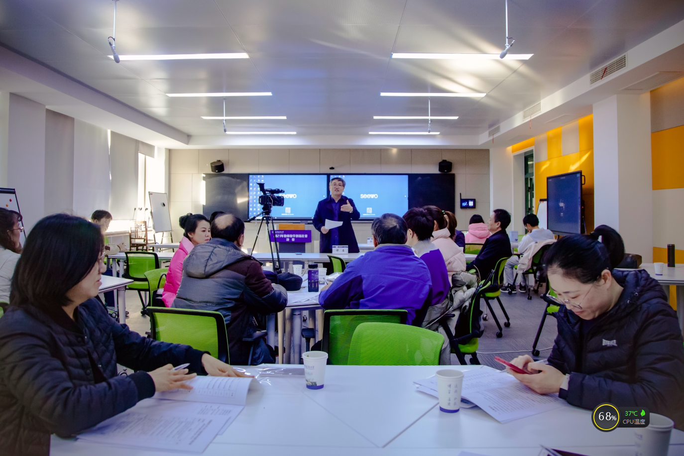 赛前召开评审专家会议,闵杰做赛前讲话,他对专家评委们的辛苦表示感谢,同时希望专家们在严格评审的同时多多交流经验,帮助提升参赛老师的教学能力和教学水平。