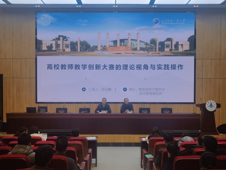 本网讯 为进一步提高我校教师的教学能力、创新能力和专业化水平,打造一支高素质、创新型、专业化的教师队伍,同时引领教师更好地备战第四届全国高校教师教学能力创新大赛,近日,学校特邀请江苏省高等学会秘书长,南京信息工程大学原副校长邓志良,南京信息工程大学高等教育研究所所长吴立保做专题培训,培训由校党委常委、副校长闵杰主持,各教学单位100余名教师参加了此次培训。