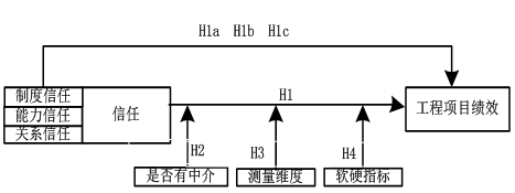 H1:信任对工程项目绩效存在显著正相关。