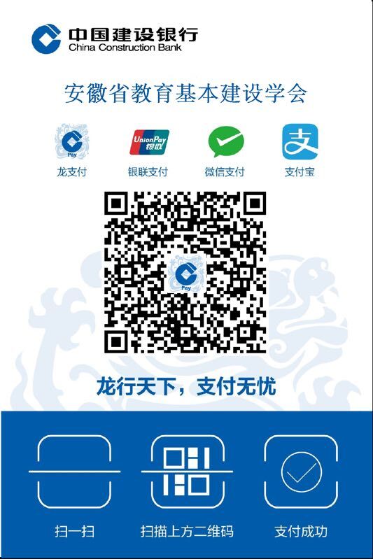 1. 银行转账。账户名称:安徽省教育基本建设学会;账号:34001488608053024823;开户银行: 中国建设银行合肥市钟楼支行。