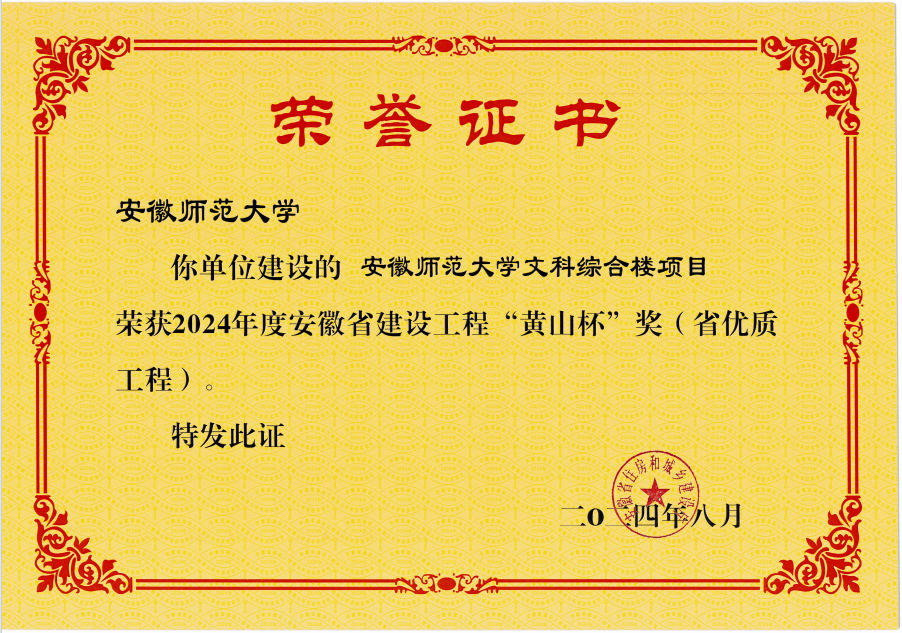 据悉,“黄山杯”是安徽省建筑行业建设工程质量的最高荣誉,每年组织一次评选,旨在发挥优质工程的示范引领作用,提高建设工程质量水平。