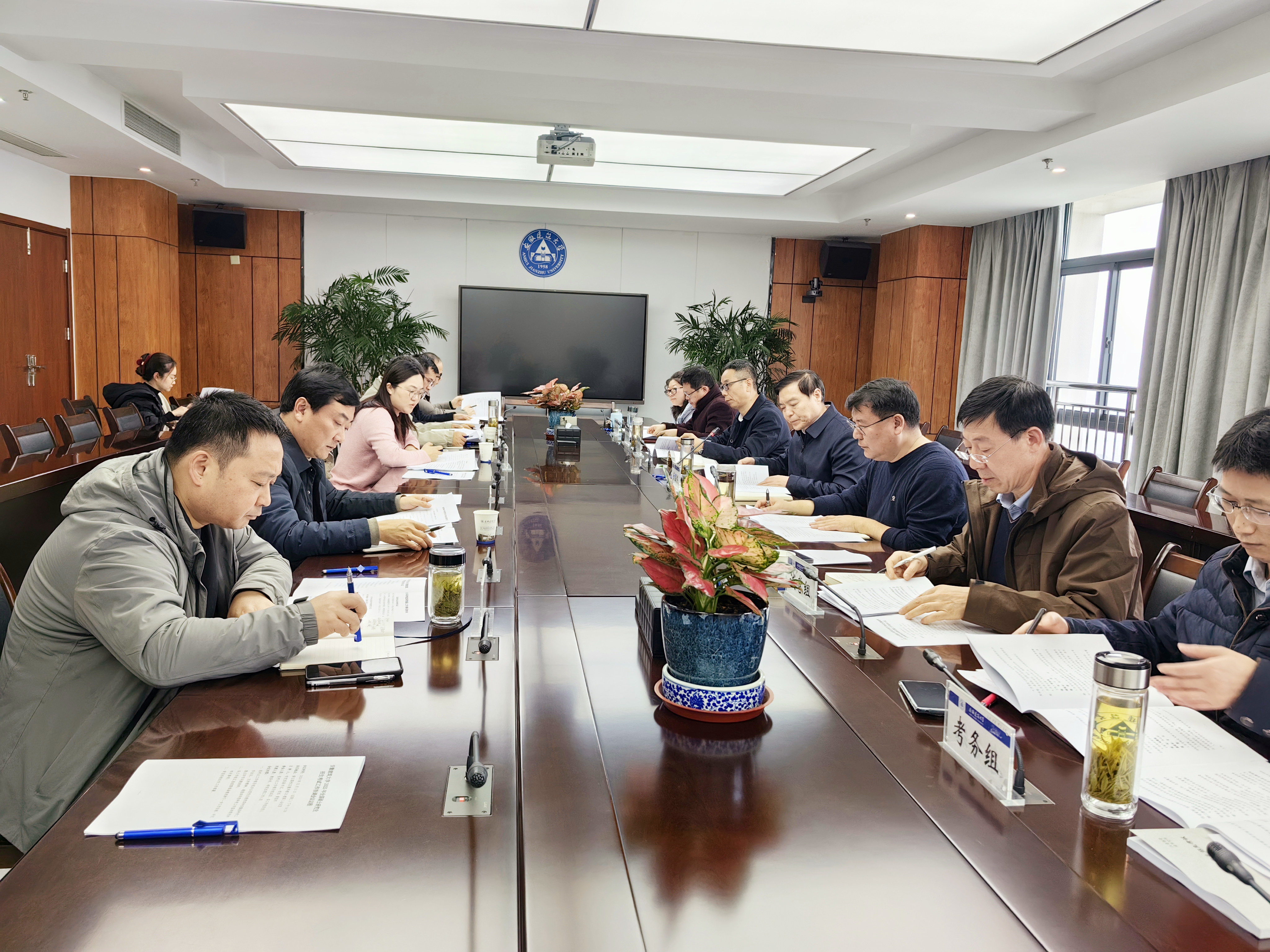 会上,教务处处长、考点办主任马巍传达了教育部、安徽省关于2025年研考工作系列会议、文件精神和省领导专项指示,通报了学校本次研考工作基本情况、组织准备工作事项清单及重点环节问题清单。本次考试将于12月21日至22日举行,我校报考点本次共有2848名应届本科毕业生参加考试,设置109个标准化考场,涉考工作人员400余名。各工作组负责人汇报了前期准备工作推进情况和近期工作规划,与会人员对政策变化、组考优化、技术革新、安检举措、后勤保障、涉考人员培训、考风考纪教育、宣传氛围营造、考生温馨服务和专升本考生协同管理等重点工作进行了集中讨论。