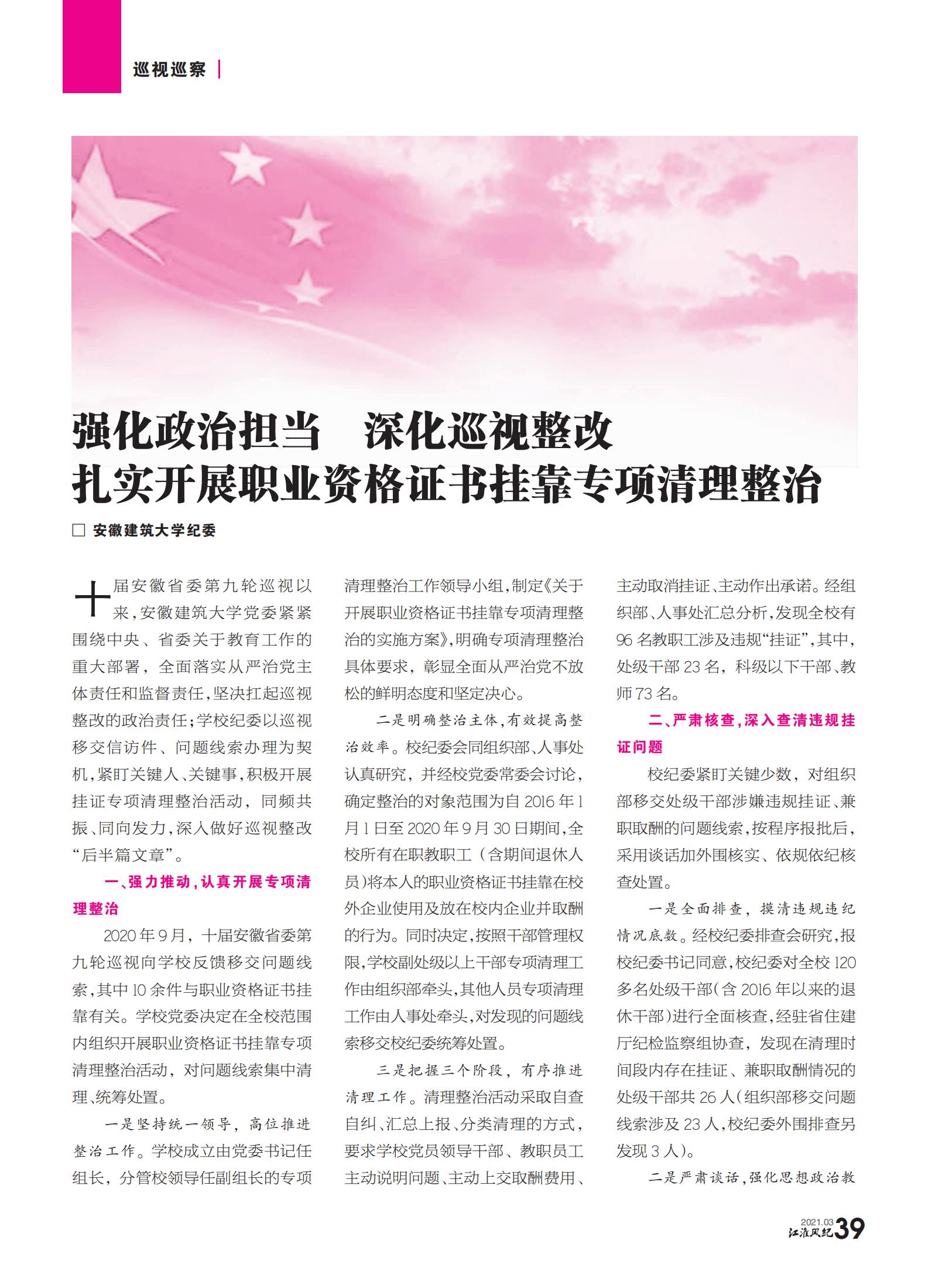 《强化政治担当 深化巡视整改 扎实开展职业资格证书挂靠专项清理整治》