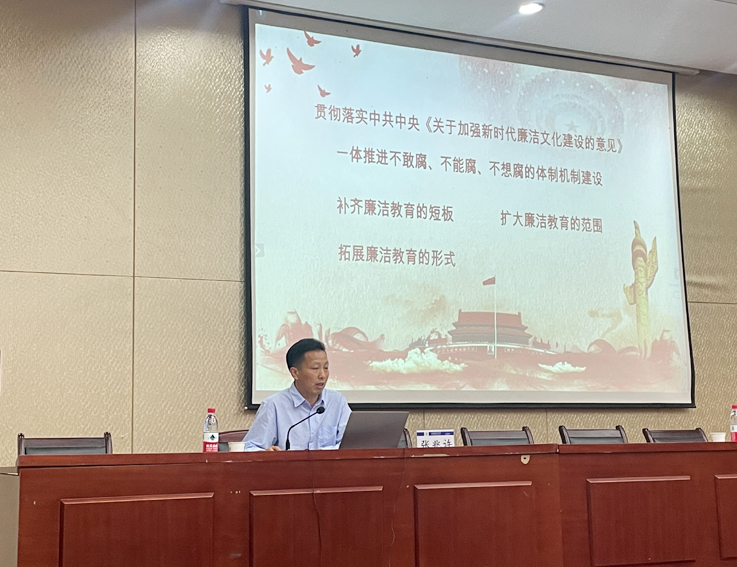 本网讯 为认真贯彻中共中央《关于加强新时代廉洁文化建设的意见》,补齐廉洁教育短板,拓展廉洁教育形式,扩大廉洁教育范围,增强廉洁教育效果,一体推进不敢腐、不能腐、不想腐的体制机制建设。近日,产业党总支邀请校纪委副书记、纪委办公室主任张兆许在北区图书馆二楼报告厅举办了廉洁文化宣讲会。