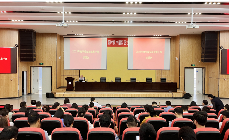 本网讯 为进一步提升全校专兼职纪检监察干部的政治素质和业务能力,9月21日,学校在南区实验综合楼2楼报告厅召开纪检监察干部培训会。省纪委监委第八纪检室四级调研员周平同志到会作题为《强化监督意识 履行监督责任 保障高校高质量发展》的专题报告,校党委常委、纪委书记、监察专员王玉兰主持会议,校纪委委员、各基层纪委委员、党总支纪检委员,各教工党支部纪检委员,纪委办工作人员参加会议。