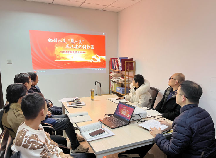 本网讯 为强化支部党员的纪律观念和规矩意识,12月27日,机关第一党委纪委办巡察办党支部在徽风楼1905会议室,集体观看2024年高校党组织示范微党课第二期《党史中的纪律建设》。
