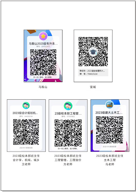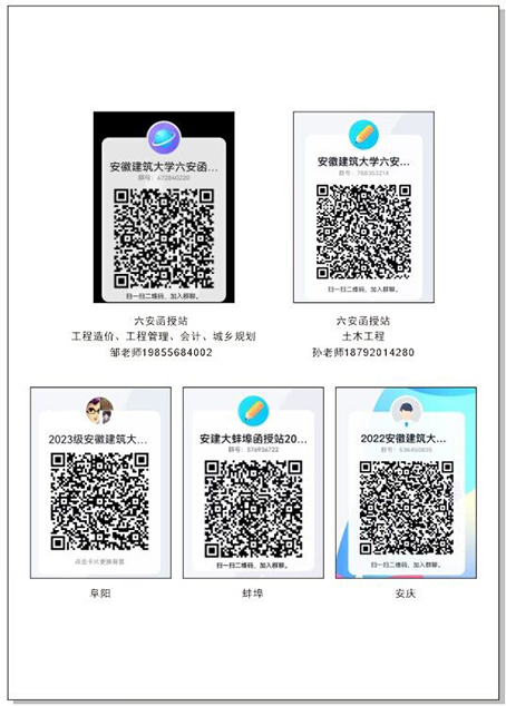 (2)考虑到疫情防控工作要求,今年继续实行线上+线下学习模式。新生根据所选函授站及录取专业,加入相关班级群(见二维码),办理入学报到手续,完成学籍录入、注册工作。注册后方可参加学习和考试。班级QQ群是由班主任老师管理的学习平台,不接纳非本校录取学生,中介机构人员。群成员均要实名,入群后请修改群名片为“学号+姓名”,否则将予以清除。