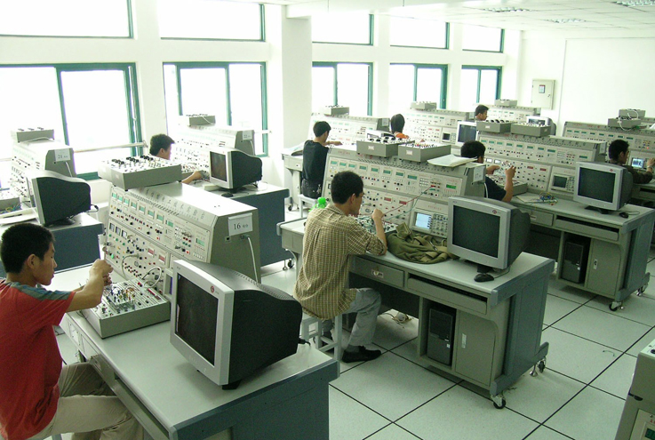 实验中心另一大教学任务是负责电气工程(电气自动化、自动化、过程装备)类各专业的专业基础课实验、专业课实验、电气工程专业实践性环节教学;负责学生自动化创新活动指导等。目前开设的实验实践性课程包括“自控原理实验”,“电力电子技术实验”、“电机与拖动实验”、“交流调速实验”、“仪表与检测实验"、“过程控制实验"、“供配电实验"、“电气工程生产实习"等。