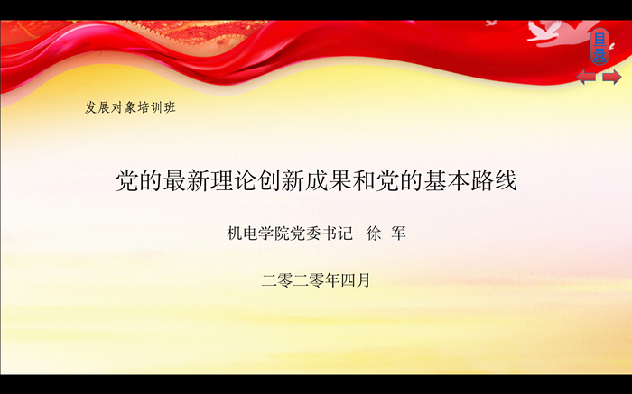 本网讯 为了贯彻落实《中国共产党发展党员工作细则》,严格发展党员工作程序,保障新发展党员工作质量,5月6日,机电学院2020年春季发展对象网络培训班正式开班,经前期对发展对象相关工作的周密部署和安排,最终确定63名发展对象参加本次培训班。