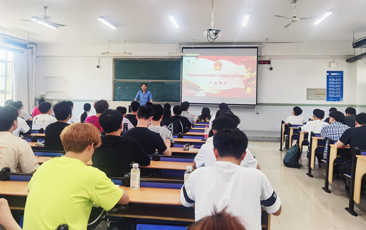 本网讯 为切实提高入党积极分子的思想觉悟,端正入党动机,扎实做好入党积极分子的培养和教育工作,5月4日,机电学院党委分党校在东辅楼2101举办2022年春季入党积极分子培训班开班典礼,机电学院党委、分党校校务委员和127名师生入党积极分子参加了此次开班仪式。
