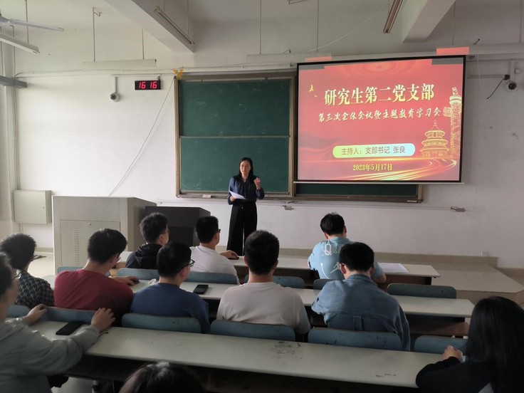 本网讯 5月17日,机电学院研究生第二党支部在逸夫楼5419教室召开主题教育学习交流会,会议由党支部书记张良主持。