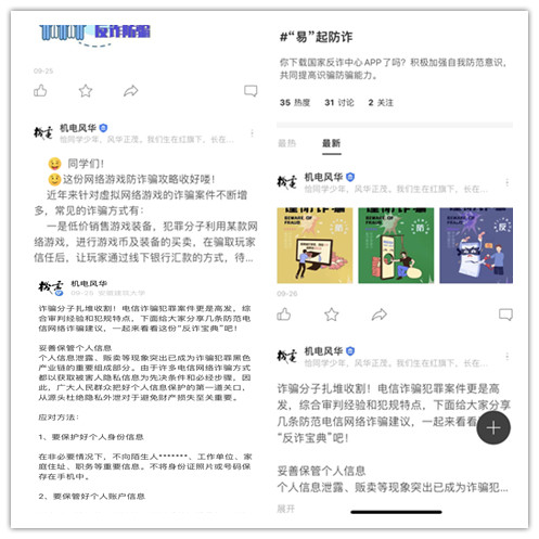 同学们还在易班·今日校园上写下对防电信网络诈骗反传销的感想和体会,主动参与到学习电信诈骗和传销的相关知识中来,提高识别电信网络诈骗和传销的能力。