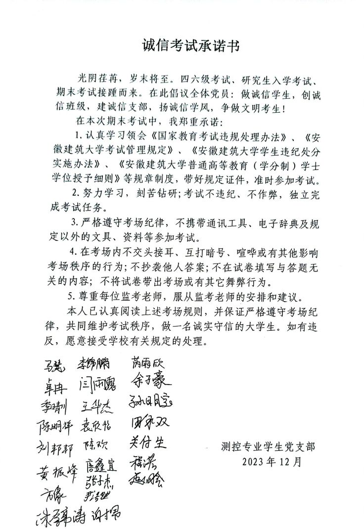 诚信考试教育是一项经常性的教育活动,测控专业学生党支部抓牢抓实党员日常教育管理,通过诚信育人、党建育人筑牢学生党员诚信考试的思想根基,对持续推进学风考风建设,培养能够担当民族复兴大任的时代新人打下坚实基础。(文:江双、图:季晴川;审稿:叶少宝)