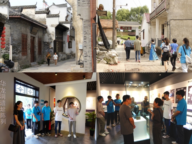 7月10日,实践团参观了东流老街、陶公祠、秀峰塔、华龙洞遗址成列馆。“青砖小瓦马头墙,朱角飞檐鱼悬梁”,走在老街斑驳的麻石条街道,闺阁深藏的老屋庭院,虽历经世纪风雨侵蚀,依然保留着它的古朴安逸;“遇明君哪得赋归去来辞,逢盛世定不作桃花源记”,被陶公卓然独立、隐逸脱俗的人格境界深深感染;华龙洞遗址陈列馆,包含展陈楼、专家楼和科普楼,通过文物展示让考古走进师生视野,探源中华文明,增强了师生历史自信和民族自豪感。