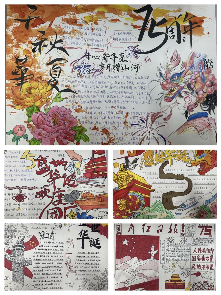 翰墨绘盛世,丹青颂中华。同学们以笔墨寄情、丹青绘梦,用手中的画笔精心描绘心中的红色记忆,让红色精神在新时代绽放更加耀眼的光芒,为祖国华诞献上诚挚贺礼和美好的祝福。