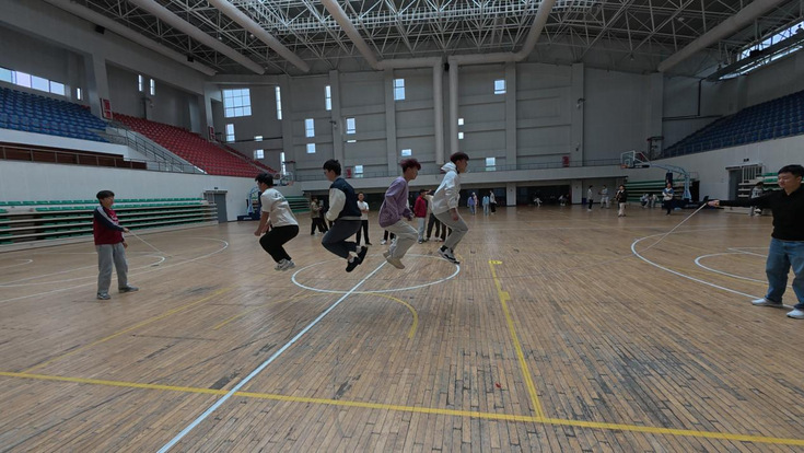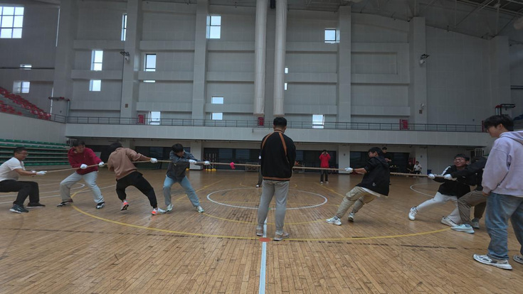 长绳在空中飞舞,同学们依次轻盈地跃入,又迅速跳出,集体跳绳环节同样精彩。大家全神贯注,配合得天衣无缝,随着绳子的起落,他们的身影如同跳动的音符,奏响了一曲充满活力的青春乐章。拔河比赛中,参赛的寝室队伍们摩拳擦掌,齐心协力。随着裁判的一声哨响,双方队员紧握绳索,脚蹬地面,使出浑身解数。场边的观众们呐喊助威声此起彼伏,气氛热烈非凡。