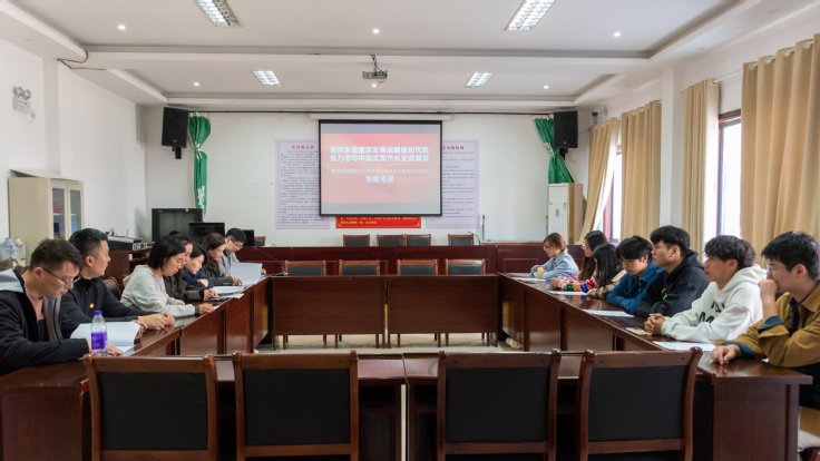 在金家岭村村委会,师生们开展了深入学习贯彻习近平总书记考察安徽重要讲话精神的专题党课,由陈中主讲。
