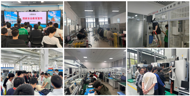 本网讯   4月21日至25日,2025届机械专业139名同学在机械系教师党支部三位教师党员的带领下,赴合肥市公共实训中心开展为期一周的实训活动。本次实训共分成四组分别学习了楼宇智能化、电子设计、数控加工和汽车发动机四门课程。