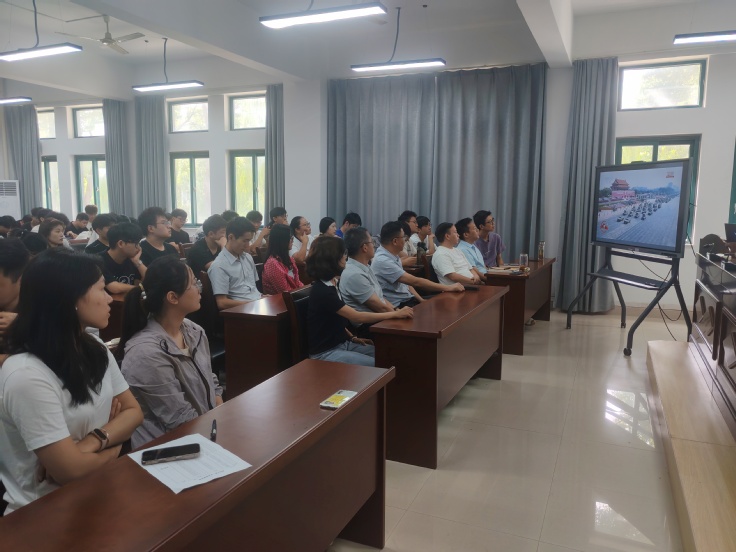 直播过程中,师生们全神贯注,认真聆听习近平总书记的重要讲话,回顾中华民族抗日战争的光辉历程与伟大意义,深刻体会中国人民在世界反法西斯战争中作出的不可磨灭的贡献。观看阅兵环节时,受阅部队在长安街列阵接受检阅的壮观场面,让现场气氛瞬间热烈起来。师生们被现代化的国之重器所震撼,为人民军队昂扬向上的精气神所鼓舞,民族自豪感油然而生,现场多次响起热烈掌声。