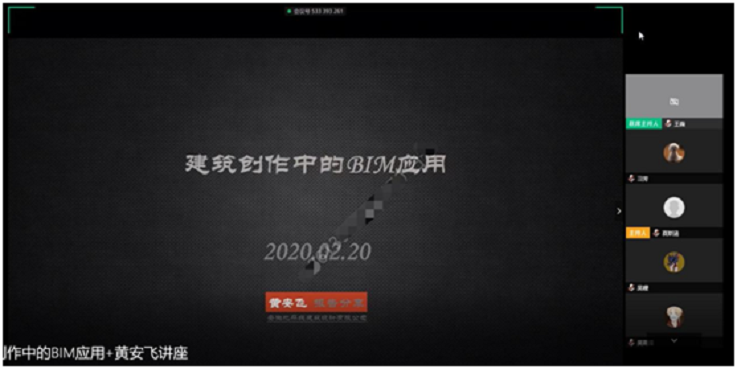 黄安飞从建筑的行业演变与现状、BIM的内涵、BIM的全生命周期应用以及BIM在建筑创作中的应用这五个部分展开阐述,通俗易懂、深入浅出地介绍了BIM的发展历程以及在建筑创作中的实践应用。最后,黄安飞结合今年“谷雨杯”设计竞赛相关要求,为大家解析了设计竞赛中的技术要求,为同学们接下来的课程设计和设计竞赛提供了设计方法和思路。网络讲座形式新颖,学生参与度高,互动气氛好,受到师生们的一致好评。