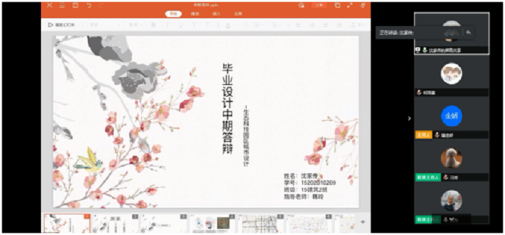 4月24日下午,15级建筑学师生通过腾讯视频会议进行了2020届本科建筑学专业毕业设计中期答辩。本次中期检查以保证毕业设计按进度顺利开展,进一步提升设计成果的质量为目的,以学生PPT汇报、各位老师组成的专家组提问的方式进行。