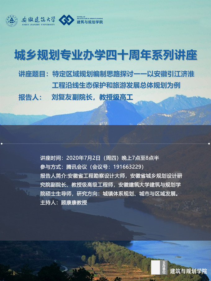【2020学术报告】城乡规划专业办学四十周年系列讲座(一)