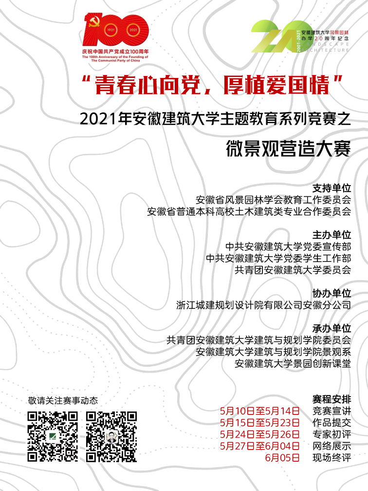 以“青春心向党,厚植爱国情”为主题,在50cm×50cm×50cm的空间内完成微景观营造,所选用植物应为常见品种,相关其他材料及种植容器能够体现低碳环保理念,倡导就地取材、材料循环再利用。参赛作品应主题鲜明,能够从某一侧面展现建党百年的光辉历程或伟大成就,以微景观为媒介,向建党百年献礼。