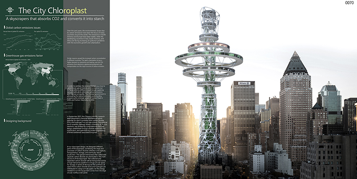 本网讯 5月2日,由eVolo杂志举办的国际竞赛“2022年摩天大楼竞赛”公布评选结果,获奖名额包括一、二、三等奖各1名以及荣誉奖20名。我校建规学子陈开宇、林勇、李子奕、陶志鹏团队合作完成的《The city chloroplast: a skyscrapers that absorbs CO2 and converts it into starch》,在全球427项竞赛作品中脱颖而出,获得了该国际竞赛颁发的荣誉奖奖项。